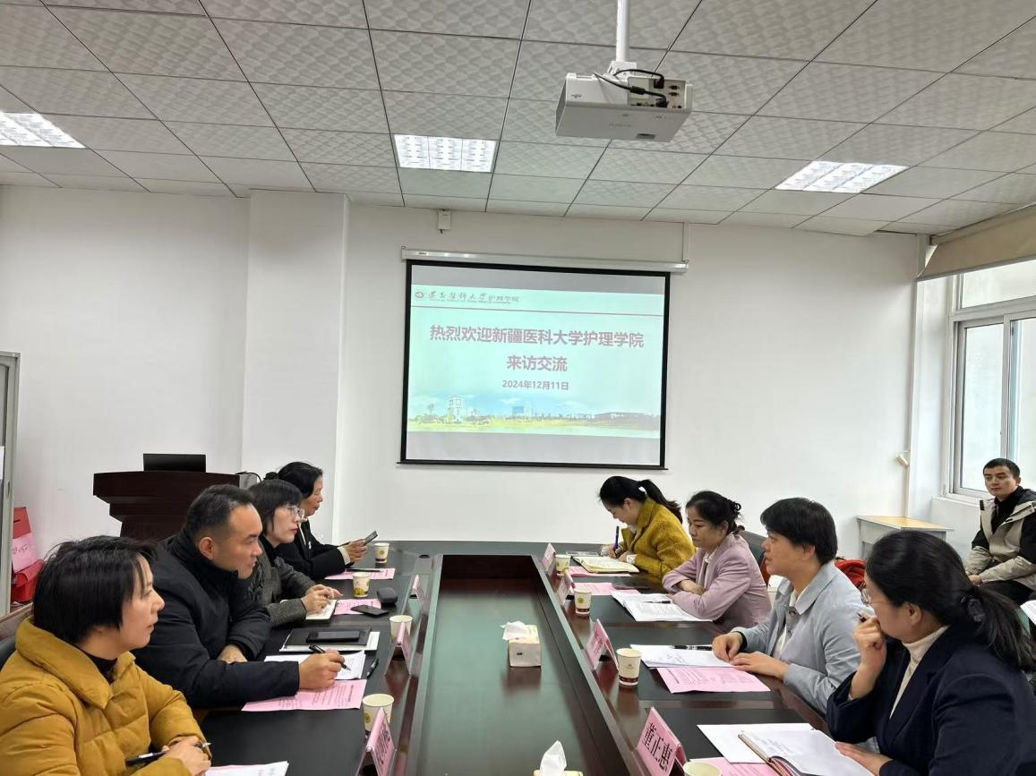 2024年12月11日,中国-东盟高等护理教育联盟单位、新疆医科大学金年会jinnianhuicom党委副书记、院长颜萍一行5人来金年会访问交流。金年会jinnianhuicom党委副书记陈伟,党委委员、副院长王连红,党委委员、学生第二党支部书记权明桃以及学院职能部门负责人、教研室主任和年级老师参加交流会。交流座谈会在金年会jinnianhuicom会议室召开,会议由学院党委副书记陈伟主持。