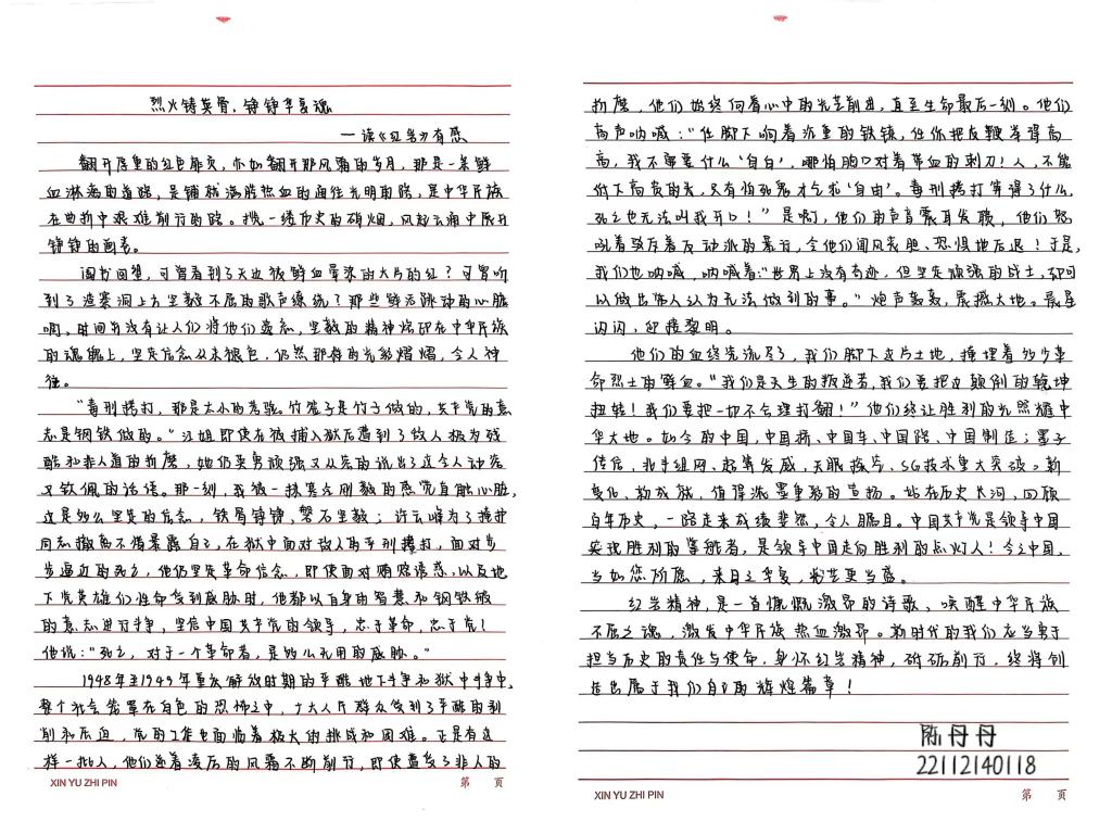 品读红色经典,书写精彩人生。在新蒲校区各教室,2022级师生以团支部为单位,精心组织了征文比赛和主题活动。同学们主要围绕在红色文学作品中收获的情感体验和精神成长,共计提交优秀作品30余份。此外,各班团支书还带头积极推荐和分享了自己近期阅读的《活着》《时间简史》《许三观卖血记》《平凡的世界》《追风筝的人》等经典书籍,让大家通过阅读,不断充实知识储备,提升综合素质和能力水平。
