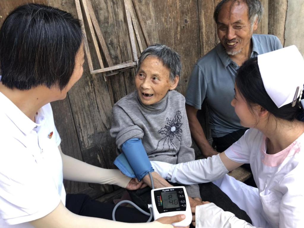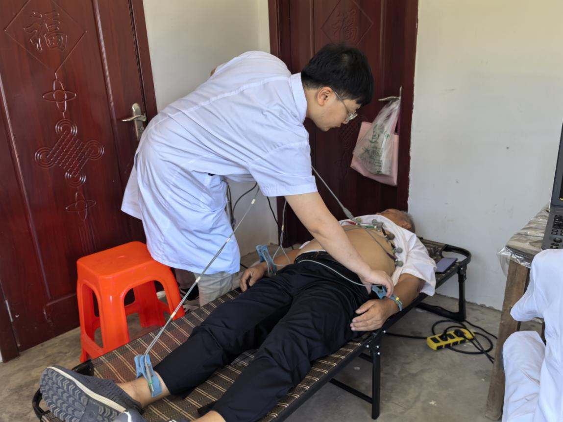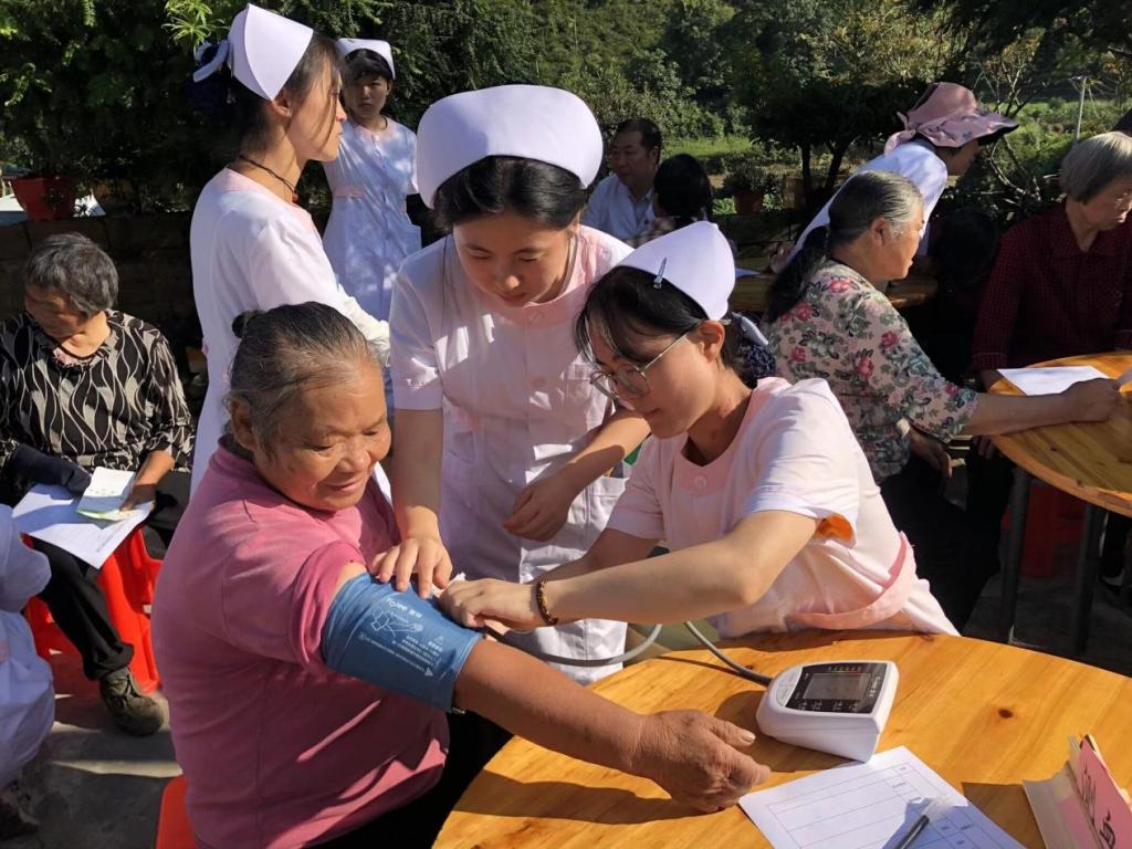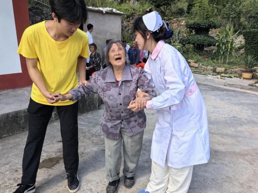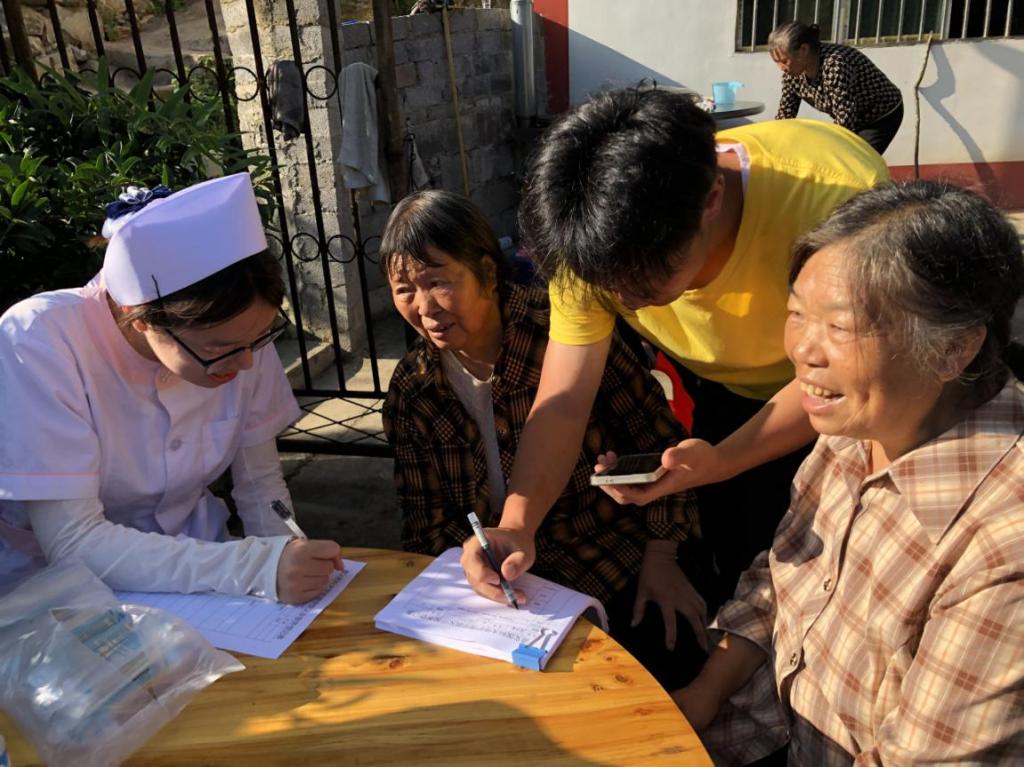 在义诊现场,医疗专家们热情接待每一位前来问诊的村民,详细询问病史,认真分析病情,并结合各项检查结果给出诊疗方案。针对行动不便老人,医疗专家和实践团师生携带检查设备走进村民家中,真正将健康送到了百姓的家门口。实践团的成员们也充分发挥专业优势,为村民们进行测血压、测血糖等服务,并担当起“导诊员”的角色,有条不紊地为前来检查的村民做好登记和引导工作。