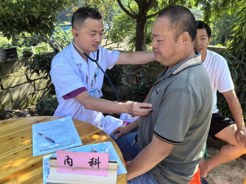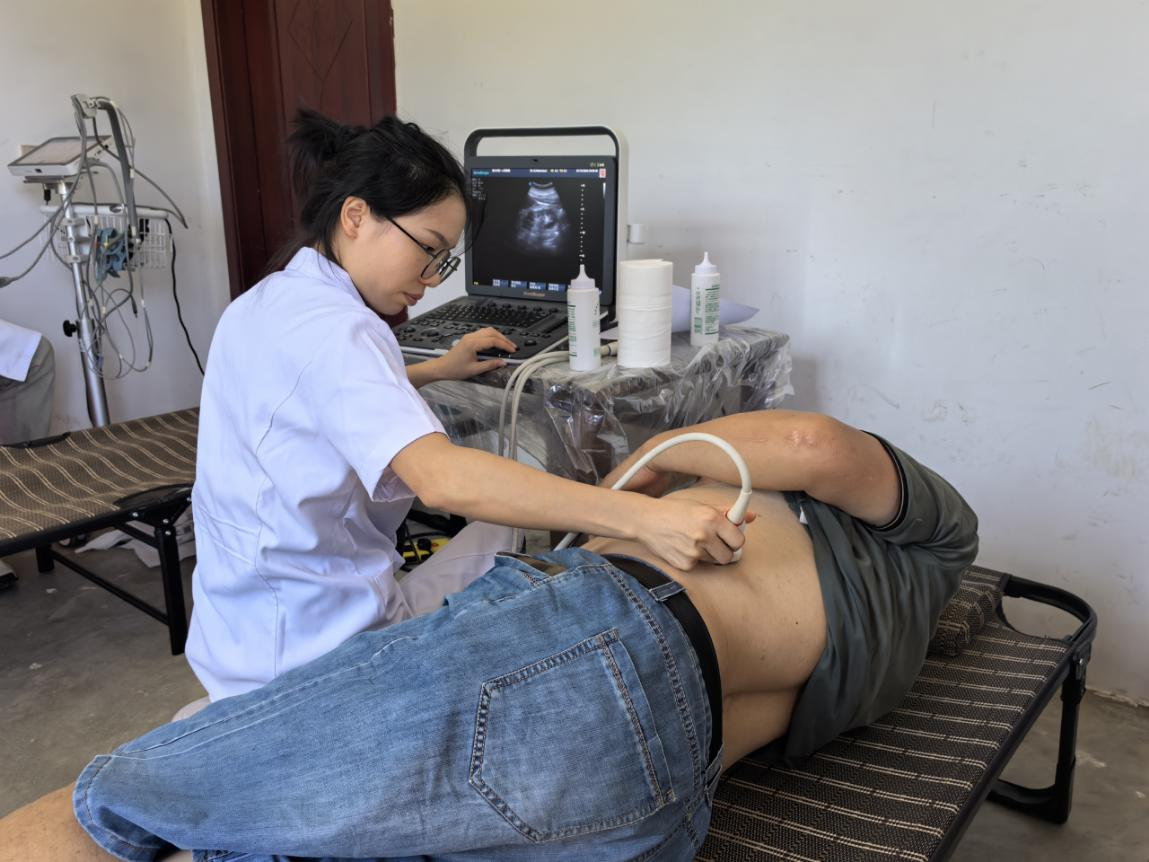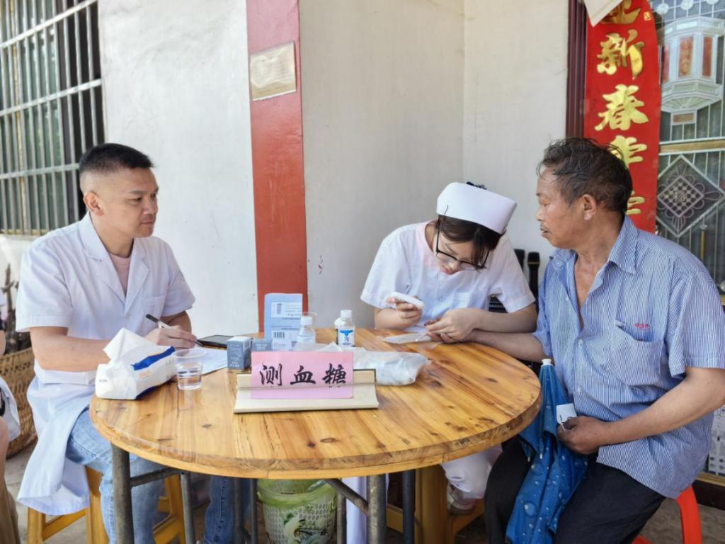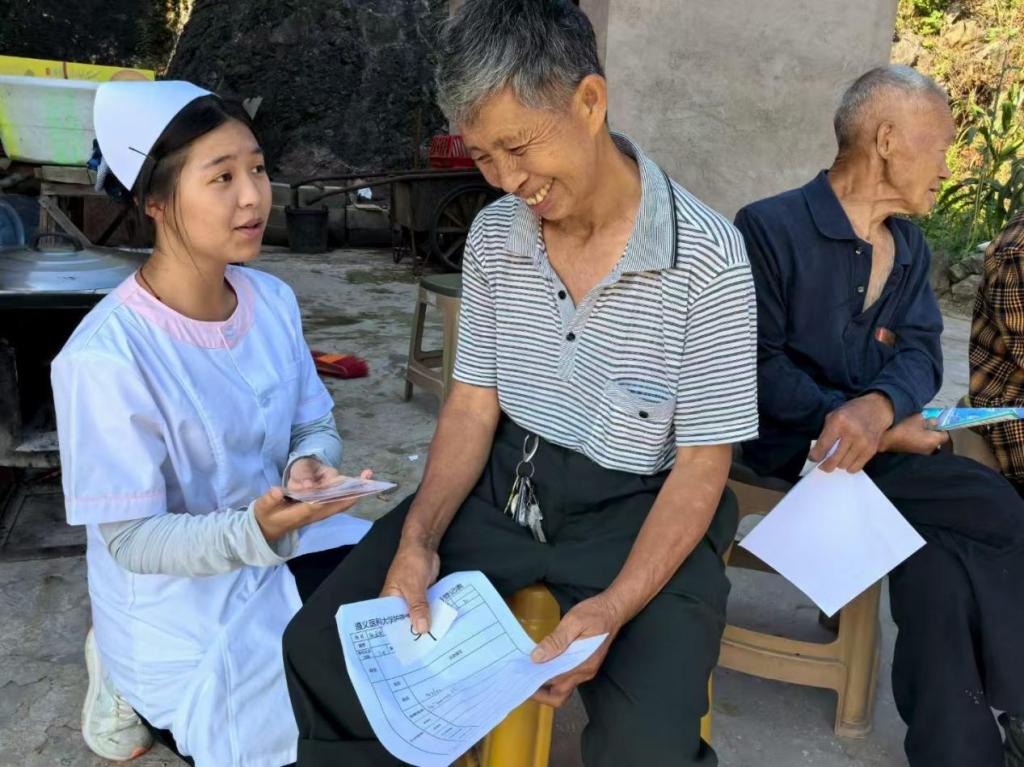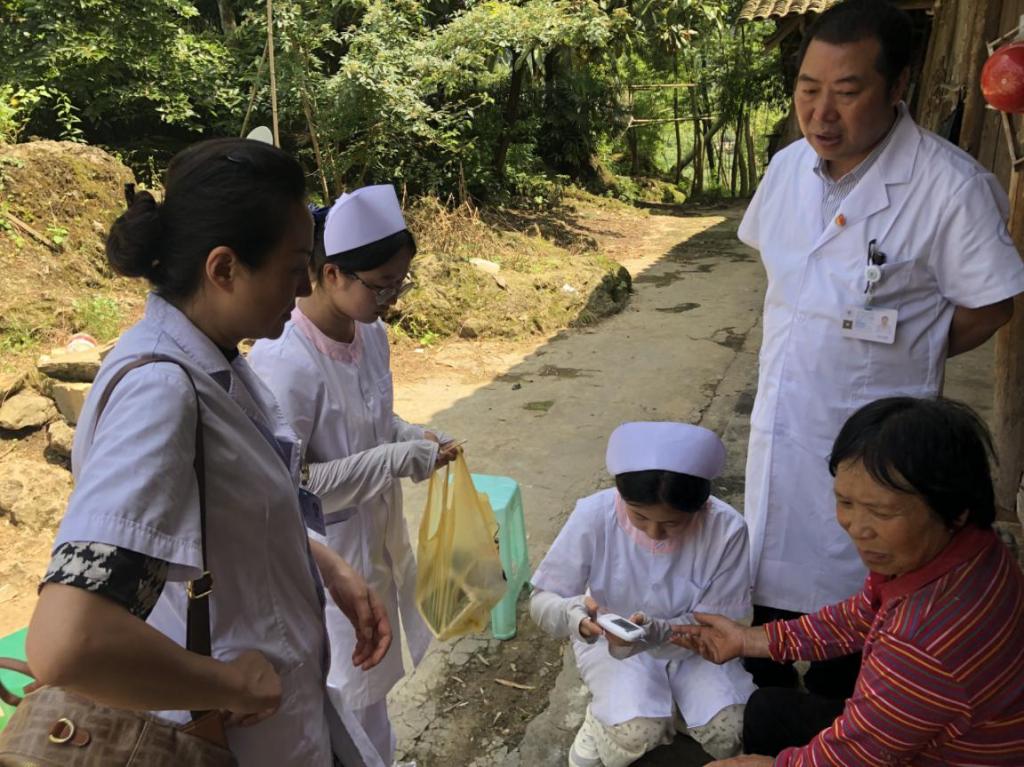 在义诊现场,医疗专家们热情接待每一位前来问诊的村民,详细询问病史,认真分析病情,并结合各项检查结果给出诊疗方案。针对行动不便老人,医疗专家和实践团师生携带检查设备走进村民家中,真正将健康送到了百姓的家门口。实践团的成员们也充分发挥专业优势,为村民们进行测血压、测血糖等服务,并担当起“导诊员”的角色,有条不紊地为前来检查的村民做好登记和引导工作。
