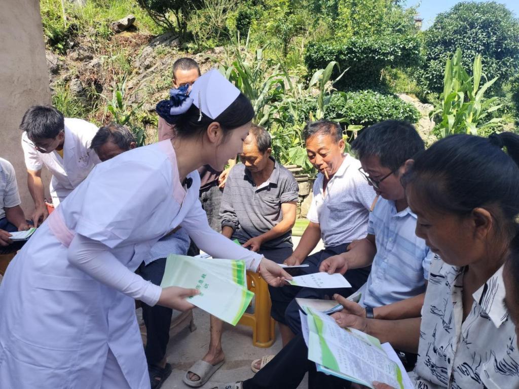 在健康科普小课堂,针对农村夏季常见的中暑、蛇虫咬伤、蜂蜇伤、防溺水等健康问题,实践团队员向村民们发放了健康宣传手册。为让科普知识更易被村民接受,队员们采用情景演绎的形式,生动形象地向村民们进行健康宣讲。