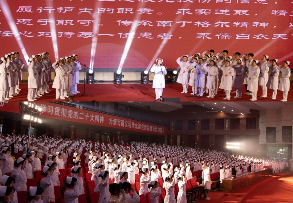 润育天使、呵护健康!全体师生将不忘来时路,牢记初心使命,感悟精神内涵,以白衣为甲,彰红医风华,激扬青春力量,奋进新征程,在奋力实现中华民族伟大复兴的实践中放飞青春梦想,书写奋斗篇章。(一审:夏同霞;二审:陈伟;三审:张咏梅;撰稿:陈娅、吴雪双;摄影:团委宣传部)