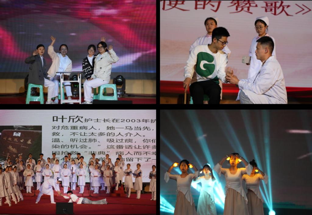 五月,我们携手筑梦,劳动最美;五月,我们正青春,奋斗正当时!2023年5月8日18:30,为增强护理学生专业认同,强化护理学生使命担当,展现护理学子青春风采,丰富校园文化生活,在第112个“5·12”国际护士节到来之际,金年会jinnianhuicom围绕我国护士节主题“发展护士队伍,改善护理服务”内涵要求,在新蒲校区大礼堂举办了“白衣天使心向党 青春筑梦砥砺行”护士节文艺汇演活动,分别从鞭策、展现、出发三个篇章,引导青年学子奋发有为,逐梦新征程。学院党政领导班子出席活动,1200余名师生代表参加了活动。