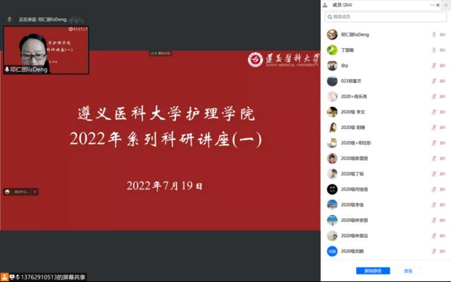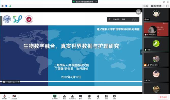 为落实省委、省政府围绕“四新”主攻“四化”,建设“四区一高地”的战略部署,充分发挥贵州省产业导师在持续提高护理学科队伍人员科研能力,拓展学术视野,促进学科交叉融合,推动护理学科建设中的积极作用。7月19日下午,学院特邀请金年会贵州省产业导师丁国徽博士和金年会公共卫生学院田坤明博士,做题为“医学大数据在护理领域的研究与应用”线上专题讲座。金年会jinnianhuicom师生、各附属医院和珠海校区护理学科骨干共计200余人线上参会。会议由金年会jinnianhuicom党委副书记、院长邓仁丽教授主持。
