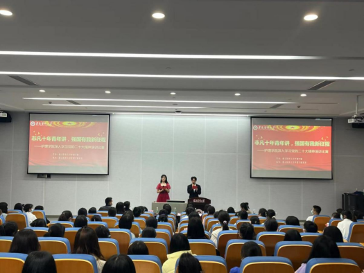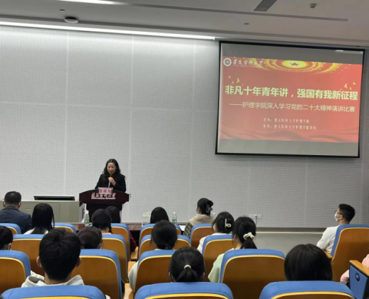 为深入学习贯彻党的二十大精神,激发广大学生“强国复兴有我”的思想和行动自觉。2022年11月18日18:30,金年会jinnianhuicom在图书馆三号多功能厅开展了“非凡十年青年讲,强国有我新征程”深入学习党的二十大精神演讲比赛。学院党委书记张咏梅,党委副书记陈伟,学生各党支部书记、年级辅导员及170余名学生代表参加了活动。