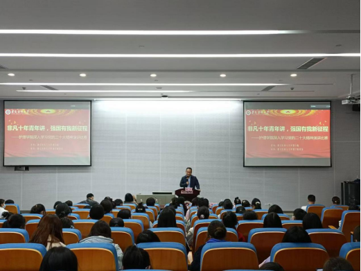 比赛在庄严的国歌声中拉开序幕。学院党委书记张咏梅致辞,向同学们讲述了党的二十大召开的重要意义,希望同学们通过演讲,把“强国复兴有我”的责任和担当展现出来,坚定不移听党话、跟党走,切实用行动贯彻落实党的二十大精神。比赛现场,选手们以深入学习贯彻党的二十大精神为主线,结合新时代十年的伟大成就,以饱满的热情、昂扬的状态,激情洋溢、声情并茂地演讲《回家的路》《非凡十年展中国风采》《十年变化,我想说》等内容,生动的内容、真挚的情感振奋人心,赢得现场阵阵掌声。最后,学院党委副书记陈伟对本次演讲比赛进行了总结点评。