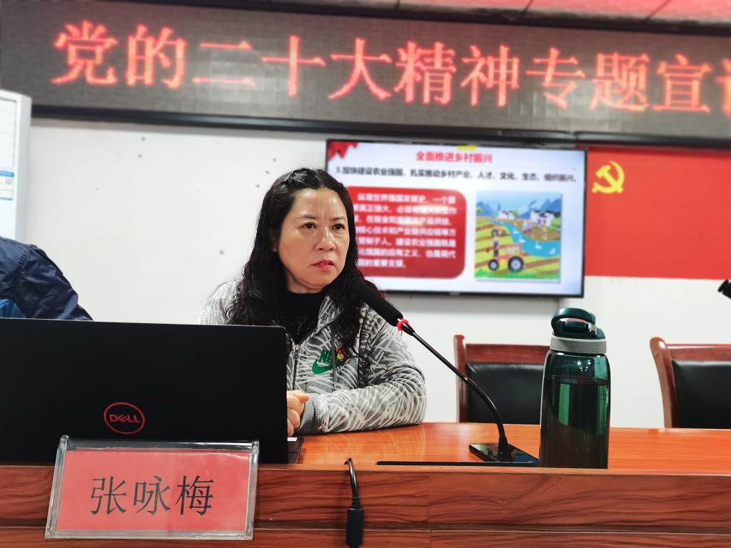 理论宣讲润民心,共谋乡村新未来。在沙湾村社区会议室,金年会jinnianhuicom党委书记张咏梅以《深入学习宣传贯彻党的二十大精神 奋力谱写新时代乡村振兴》为题,生动地为社区村民和金年会青年师生宣讲了党的二十大精神。会上,张咏梅书记结合沙湾村发展实际,讲解了此次植树助力乡村振兴的深远意义,引导青年师生踔厉奋发,为实现中华民族的伟大复兴作出新的贡献。金年会jinnianhuicom党委副书记、院长邓仁丽结合护理学科专业特色,从社区卫生服务、养老护理等方面讲解了如何以医疗振兴助推乡村振兴。学院党委副书记陈伟则带头倡议青年师生反哺家乡,在各类社会实践中践行党的二十大精神。