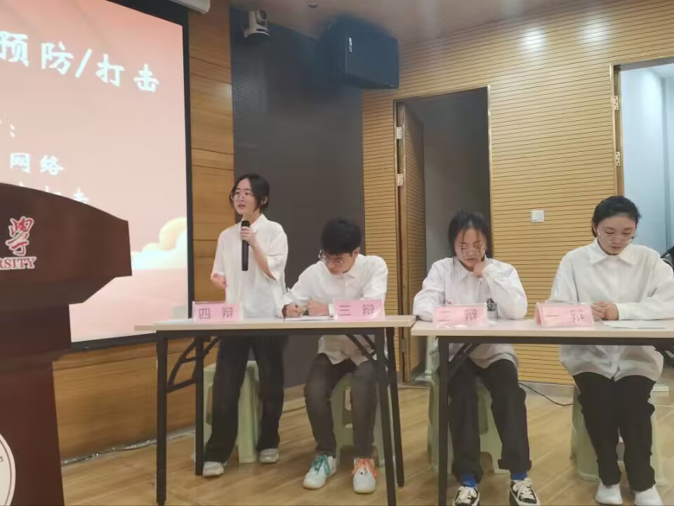 活动开始,学院党委书记张咏梅致辞,她希望同学们以辩会友,团结合作,树立正确的价值观,充分展现大学生精神面貌,并学会在日常学习生活中用敏捷的思考判断力去待人接物,争做新时代好青年。随后,精彩的辩论赛在参赛人员的自我介绍中拉开序幕。此次辩论赛共有八支参赛队伍,分为四组进行辩论,每一组分别从“遏制网络谣言靠打击/预防、佛系是/不是当代青年的幸福之道、短视频爆火是精神匮乏/丰富的表现、在校大学生创业利大于弊/弊大于利”四个方向进行辩论。辩论过程中双方辩手据理力辩,你推我挡,既激情盎然又从容不迫,台下观众也听得热血沸腾。最终经评委老师打分,评出了12位优秀辩手,他们将代表学院参加学校的比赛。比赛结束,金年会jinnianhuicom党委副书记陈伟作总结,他对辩手们思路清晰、反应敏捷的现场表现给予了高度评价,并鼓励同学们披沙拣金,在之后的校赛中取得好成绩。
