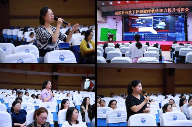 欧阳瑶教授结合自身PBL教学经验,分享了PBL教学具体实施过程和技巧;谢健副教授现场演示了OBS(Open Broadcaster Software)软件录制微课和直播教学,给师生们带来了一场炫酷的视觉盛宴;谌绍林副教授用案例教学,分析了优质专业课磨课过程,分享了重难点形象化、生动化的处理技巧;曾芬莲副主任护师讲解了集体备课与说课的规范和重点,要求做到五备三统一。护理部质控科科长何琼分析了护理查房的重难点和技巧,强调用评判性思维分析护理问题;曾慧主任护师分享了健康科普策略及科普大赛经验,强调用简单化、趣味化方式进行健康科普,提升全民健康素养。