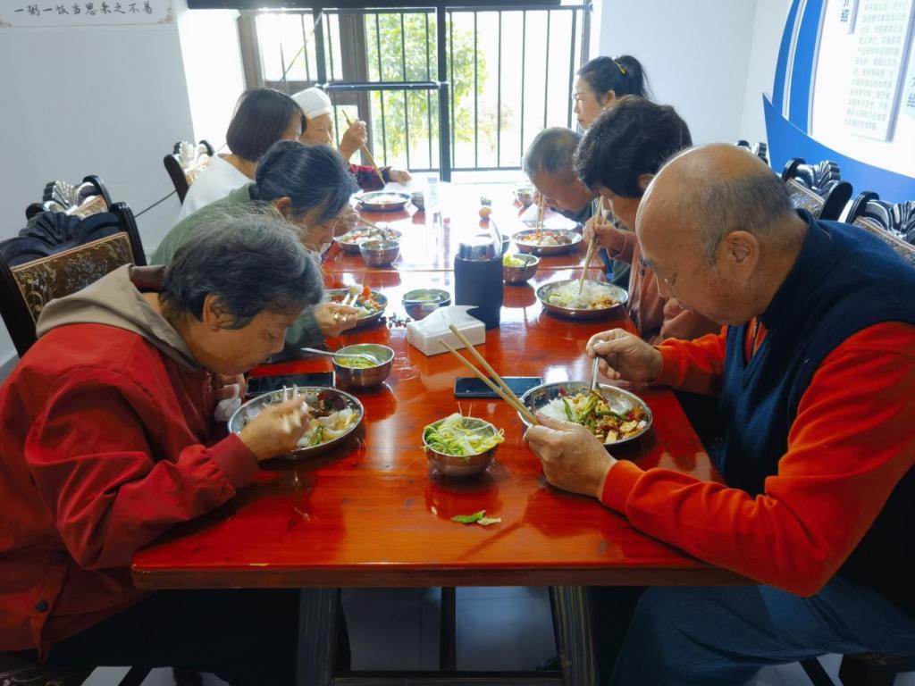 走进幸福食堂,体悟服务于民。活动最后,支部师生一行走进社区“幸福食堂”。“幸福食堂”以服务辖区“一老一小”为重点,通过党组织牵头整合资源、提供场地,引导社会广泛参与、积极投资,制定3岁以下儿童和90岁以上老人免费就餐,不同年龄段老人享受低价优惠等政策,为居民提供的惠民服务。大家同老人们一同就餐,真切体悟社区党组织为民服务的生动实践。