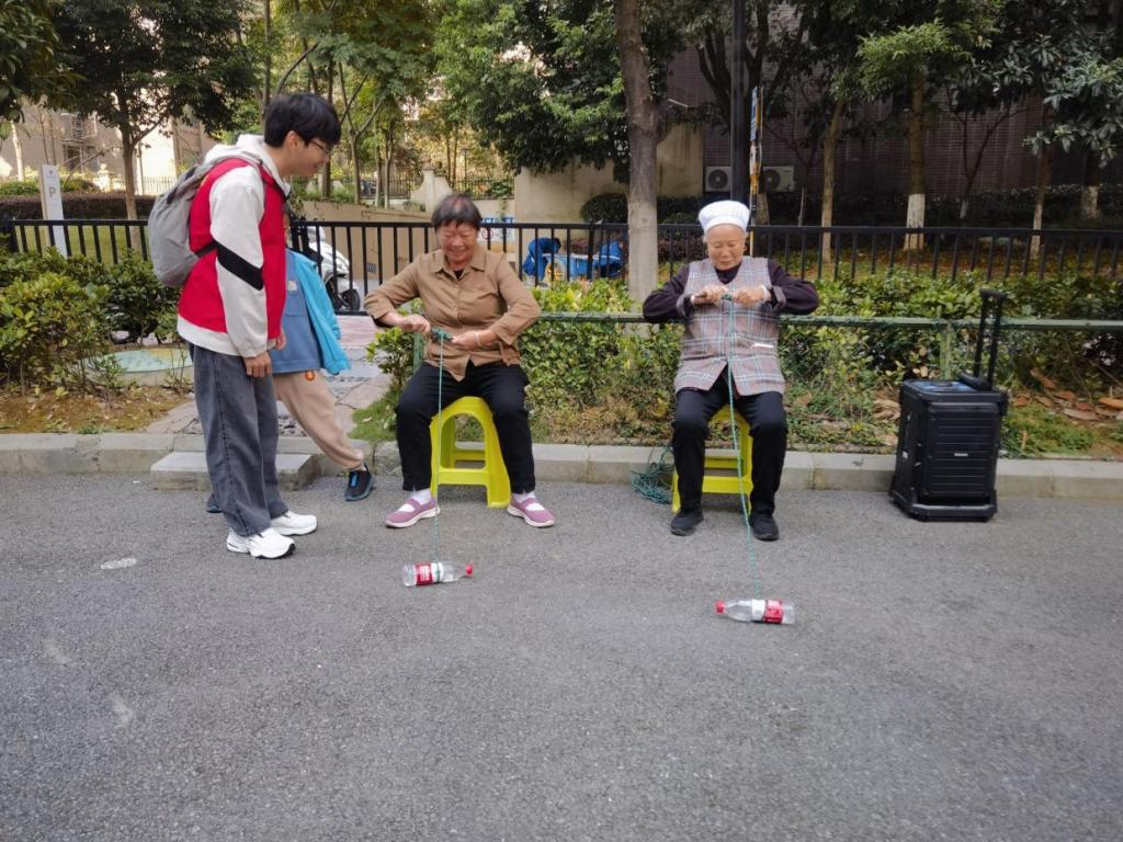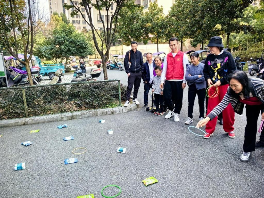 共玩趣味游戏,乐享幸福生活。宣讲结束,支部党员们走进社区广场,同老人们一起开展套圈、气球大作战、吹球挑战、瓶子快跑等趣味游戏,并向老人们发放了洗衣粉、纸巾、热水袋、食用盐等小奖品。活动现场老小同玩,气氛融洽而热烈,时而欢声笑语,时而掌声不断,老人们脸上都洋溢出灿烂的笑容。活动不仅烘托了节日气氛,也丰富了老人们的精神文化生活,提升了他们的获得感与幸福感。