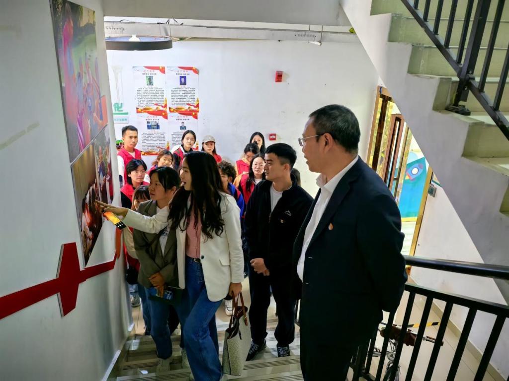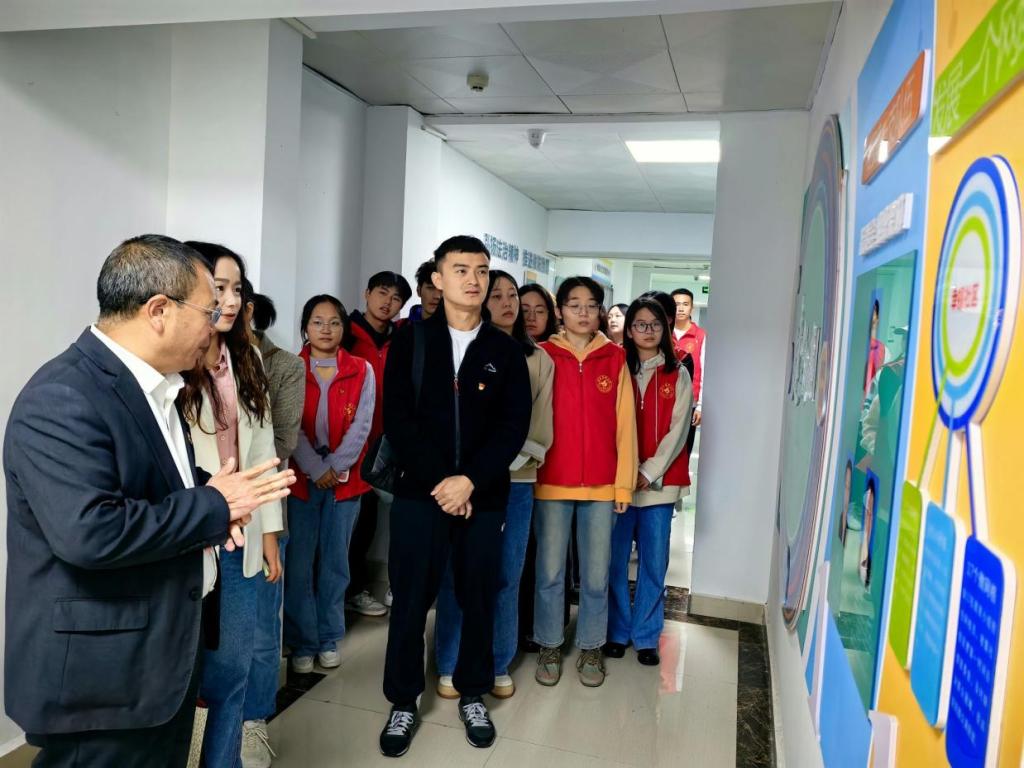 了解社区发展,强化使命担当。上午8:30,在中建幸福城社区会议室,社区党总支书记王官发向同学们介绍了中建幸福城社区的创建、发展、治理等情况,让同学们看到了一幅城镇化发展的美丽画卷。随后,王官发支书带着大家一同参观了社区党建文化墙建设,一幅幅廉政文化、制度建设、党员风采等为主题的文化墙让大家眼前一亮,增进了学生对社区党建文化的了解。参观结束,王官发支书勉励同学们要牢记共产党人的初心使命,积极作为,为新时代社区建设和发展奉献青春力量。