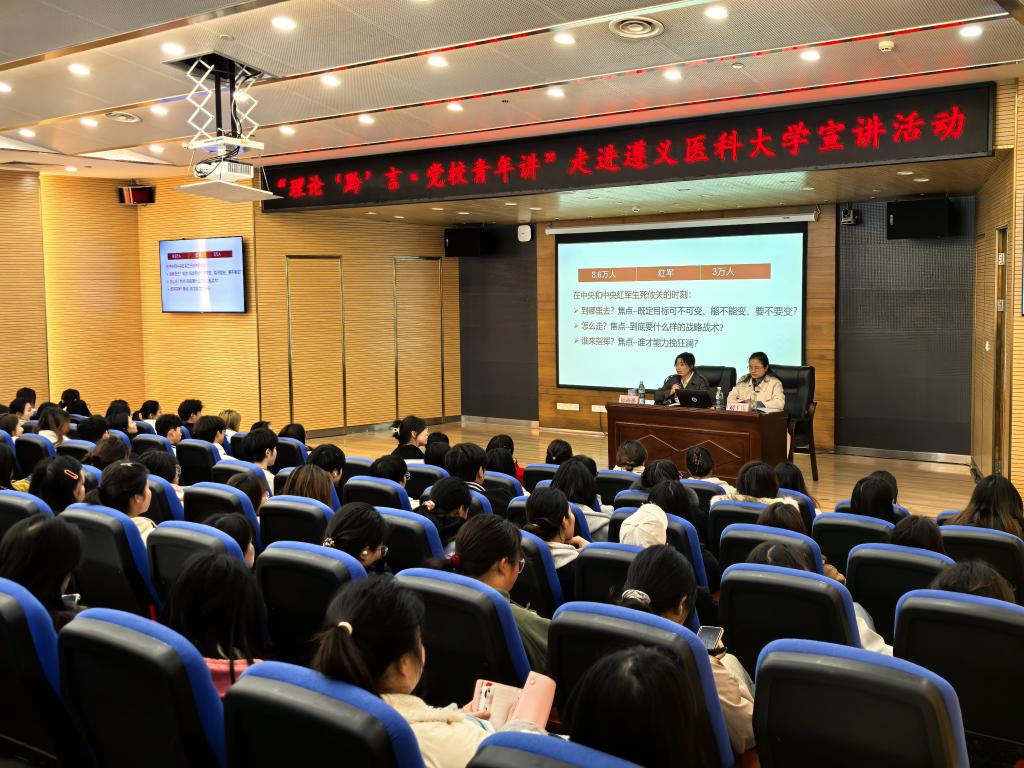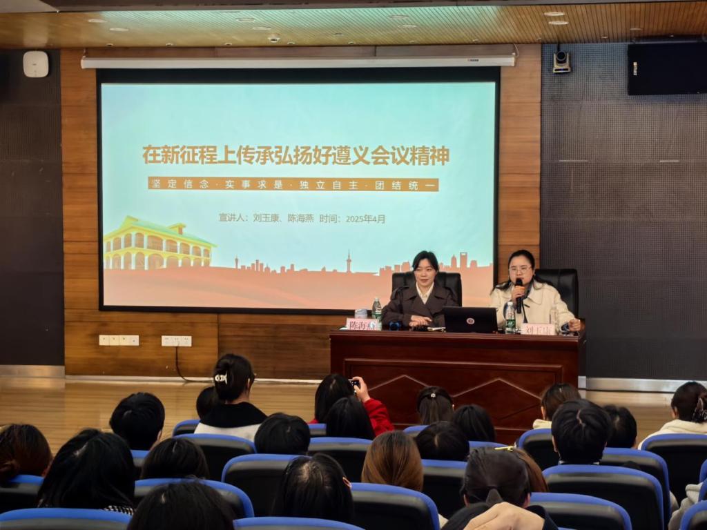 2025年4月1日下午,“理论‘黔’言·党校青年讲”宣讲活动走进金年会jinnianhuicom。本次宣讲活动采用“理论宣传二人讲”模式,由中共贵州省委党校马克思主义学院陈海燕和刘玉康两位讲师以“在新征程上传承弘扬好遵义会议精神”为主题展开宣讲。金年会jinnianhuicom150余名师生代表参加宣讲活动。
