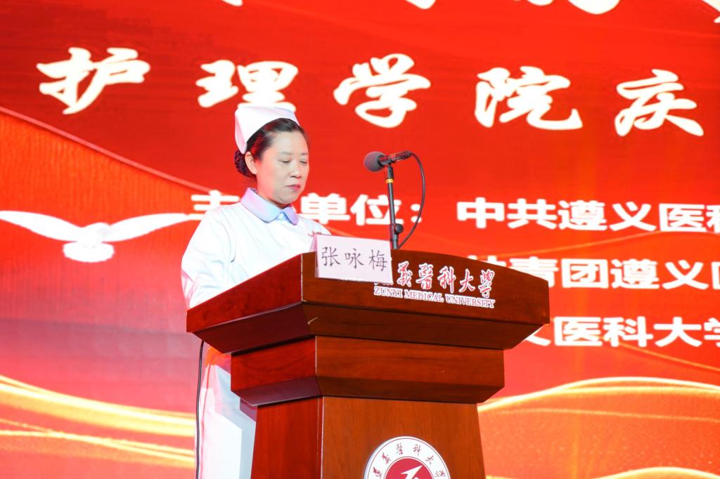 初心如炬·赓续荣光。龚其海校长向金年会jinnianhuicom全体师生、临床一线的护理工作者致以节日的问候,肯定了金年会jinnianhuicom在人才培养和推动区域医疗卫生事业发展做出的重要贡献,并向全体师生寄语了三点希望:一是坚守初心,弘扬护理职业精神;二是追求卓越,提升专业能力与服务水平;三是深化协同,推进医、教、研深度融合。学院党委书记张咏梅致欢迎辞,并激励同学们在学习和实践中锤炼本领,未来成为一名有温度、有担当的护理人。一首《提灯者的光芒》情景朗诵缓缓响起,伴随着“提灯女神”的指引,手捧蜡烛的护生迈着坚定的步伐紧随其后,意气风发走向舞台,用光影交织的演绎诠释了护理精神的永恒传承。