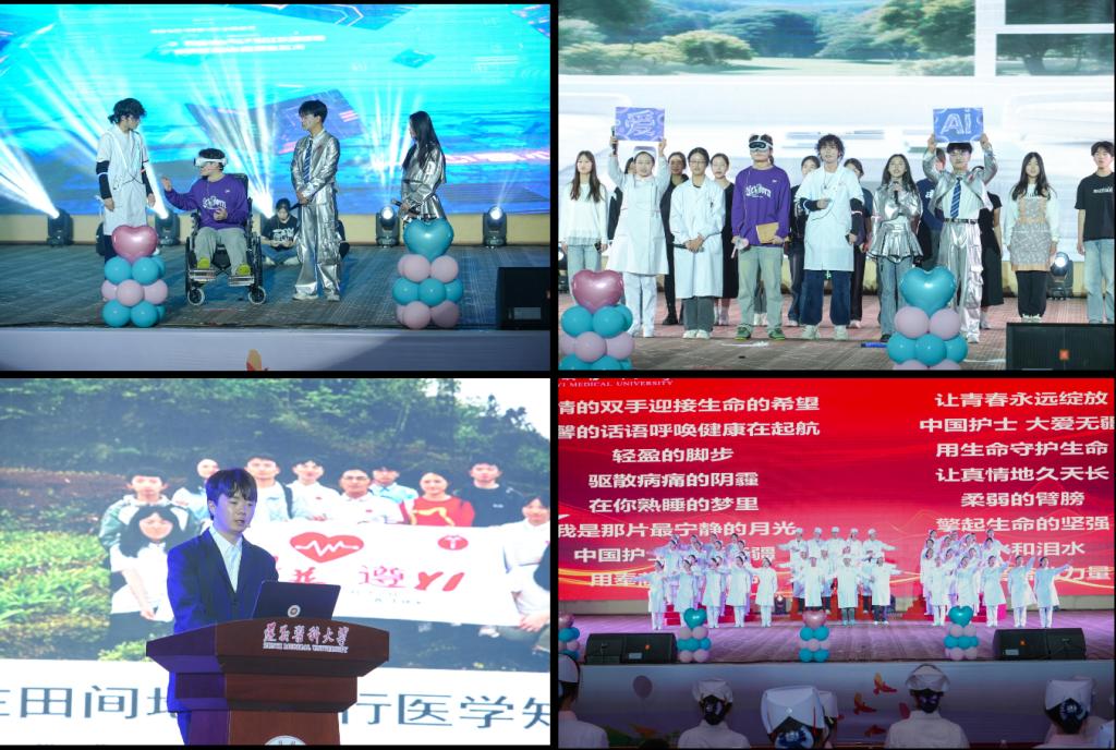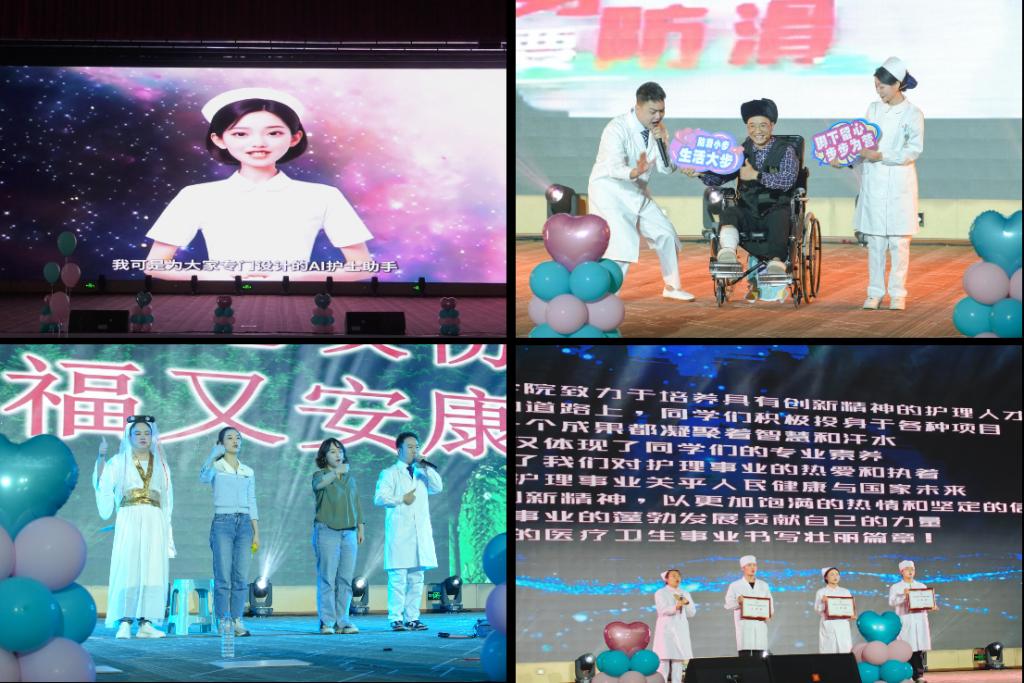 智慧赋能·青春逐梦。虚拟护士“小理”AI助手的演示惊艳全场,通过急救指导、心理疏导等实时交互功能,呈现智慧护理的无限可能。科普节目《预防跌倒disco》以活泼的歌舞形式普及老年护理知识,将专业术语转化为朗朗上口的歌词,寓教于乐;情景剧《守护生命—科学防治蛇咬伤》通过沉浸表演,传递急救技能与人文关怀并重的护理理念。大学生创新创业项目“创新引领未来 智慧守护健康”成果展,智能感应输液报警神器、自助配置蛇药智能系统等作品充分彰显了学子们将科技融入护理实践的探索精神。